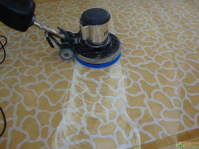 5、用装有打泡器、地毯刷的单盘扫地机,以干泡刷洗地毯