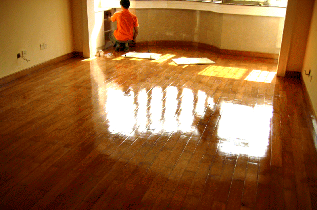 对于各种塑料地板、软胶地面、实木地板、复合地板,消毒清洗彻底清除其表面的油污、蜡渍、口香糖、肥皂渍、油碳素、漆点、胶点、涂料店、铅笔印等。然后进行打蜡抛光,经过处理的地面更显豪华并具有保护地面的作用。给地板打蜡能去污上光,增加美观,又可防虫、防潮、防开裂、延长地板使用寿命,是地板保养的必要措施。给地板打蜡有以下几几个步骤: 除尘 先用钢丝绒垫在蜡刷上顺着地板的纹路前后推动,用力搓擦,将垃圾、污渍、污垢彻底清扫干净,再用略湿的拖把拂拭一遍地板,即可上蜡。